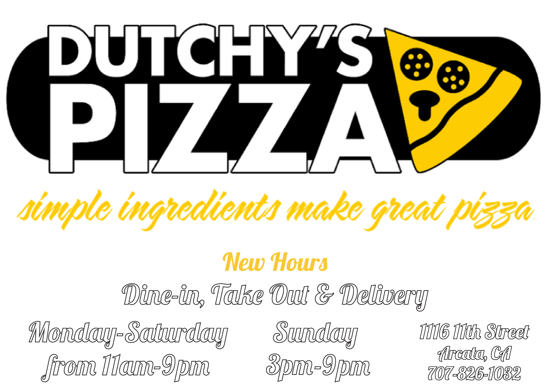 I love pizza. So, naturally, I've eaten pizza all over Humboldt county. When I went to Dutchy's for the first time I loved them. I went a few weeks later and fell in love again. Now, I go basically every week. Everyone is friendly, and the pizza has the best crust in town. Every day they change a couple of slices and they have actually good vegetarian options!!